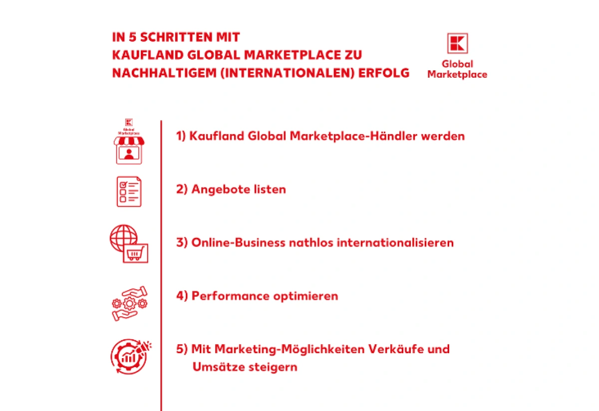 Befolgen Sie diese 5 Schritte, um mit Kaufland Global Marketplace einfach und schnell zu starten und erfolgreich international zu verkaufen.