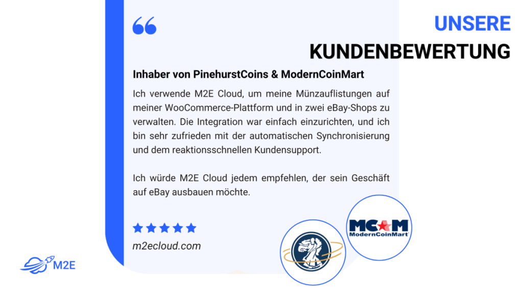 Hier ist, was einer der Kunden über seine Erfahrungen mit der Nutzung von M2E Cloud zur Steigerung der Münzverkäufe auf eBay zu sagen hatte: