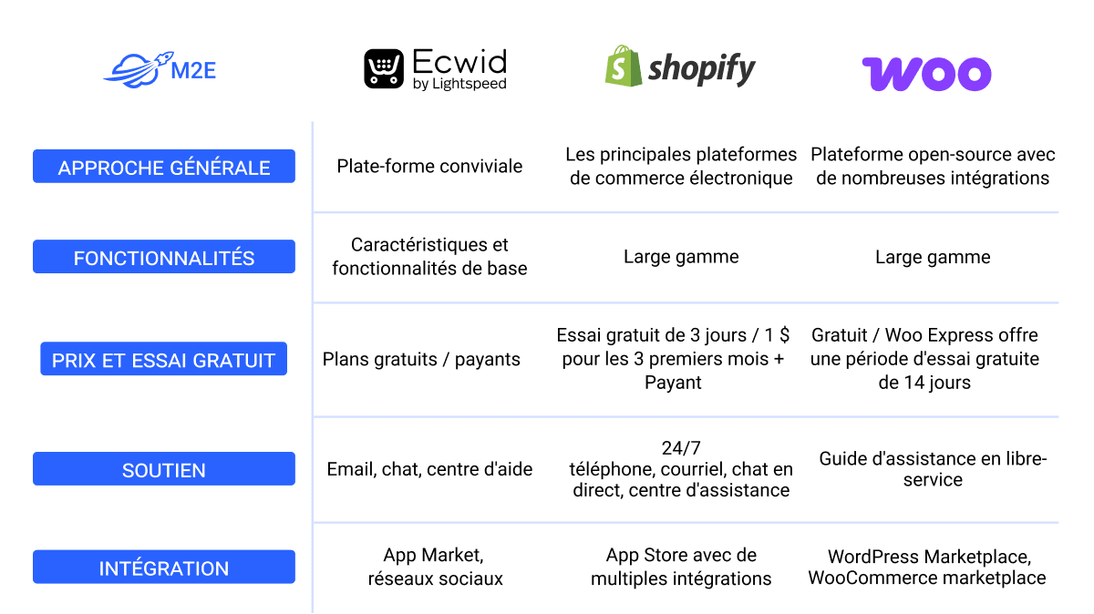 La plateforme que vous choisissez pour votre boutique en ligne peut avoir une incidence considérable sur son succès dans le monde concurrentiel du commerce électronique. Parmi les propositions, trois entreprises bien connues se distinguent : Ecwid, Shopify et WooCommerce. Chacune d’entre elles offre des caractéristiques et des fonctionnalités différentes, adaptées aux besoins des entreprises.