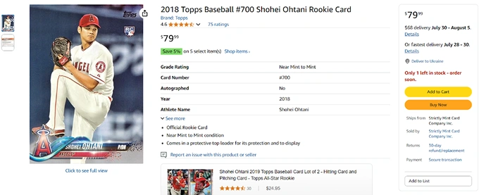 Na przykład: oferta karty debiutanta Topps Shohei Ohtani pod ogólnym, niesklasyfikowanym numerem ASIN może teraz naruszać politykę Amazona, nawet jeśli karta jest autentyczna.